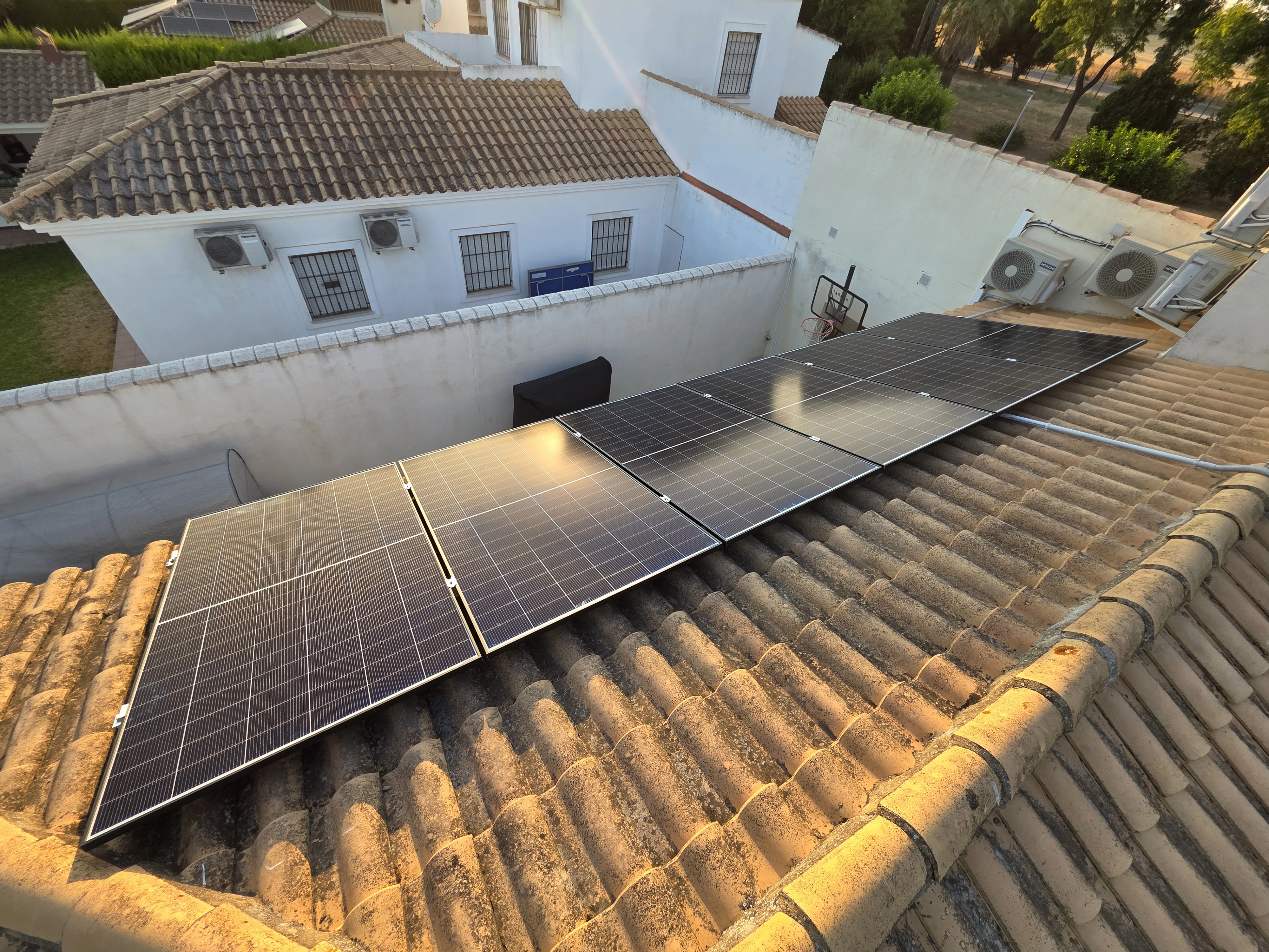 Esta vivienda en Sevilla necesitaba un sistema fotovoltaico potente para cubrir la demanda energética diaria y reducir la dependencia de la red eléctrica. Diseñamos e instalamos 11 paneles solares Jinko de 550W, conectados a un inversor Livoltek de 6kW que permite máxima eficiencia. Para garantizar autonomía y seguridad, añadimos 10kW en baterías de almacenamiento, lo que permite aprovechar la energía solar incluso en horas nocturnas o en cortes de suministro. El resultado: autosuficiencia energética, reducción del 90% en la factura de luz y un hogar sostenible.