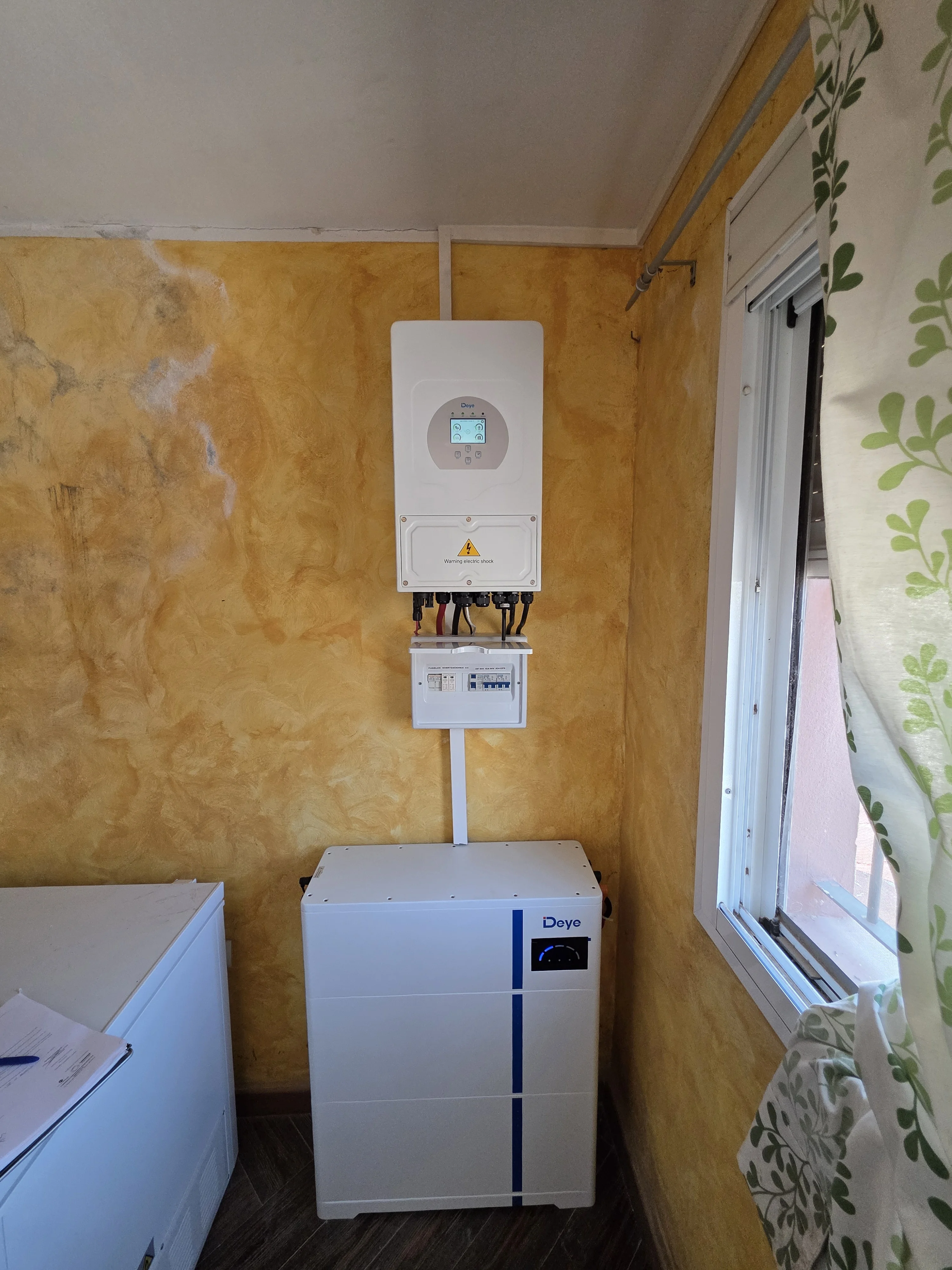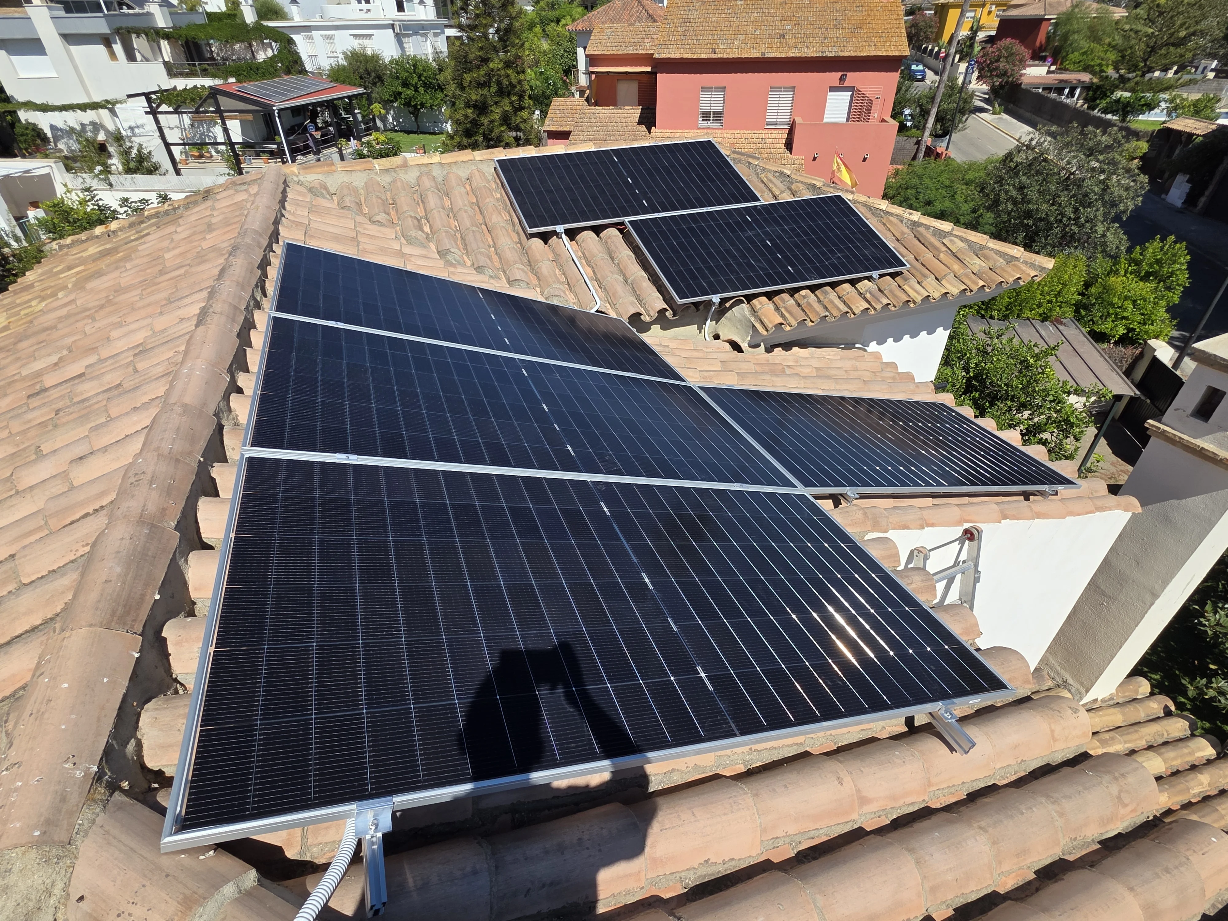 Este proyecto de autoconsumo solar de 4kW se realizó en Chiclana (Cádiz) en un solo día. Se instalaron paneles JA Solar de 595W, distribuidos en dos aguas, junto con un inversor Deye y una batería de 5.1kWh para maximizar la autonomía energética. Un sistema rápido, eficiente y sostenible que garantiza ahorro y autosuficiencia desde el primer momento.